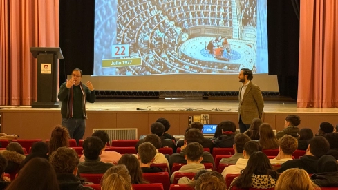 Tiene costumbre el regidor montisonense de dirigirse a los estudiantes del que fue su colegio con motivo de la festividad de la Carta Magna para exponerles la profundidad de un proceso que fue decisivo para el paso de la dictadura a la democracia. En esta ocasión, ha querido contar con alguien que vivió aquel momento, curiosamente, como ha afirmado el periodista, con la misma edad que las chicas y chicos que ocupaban las butacas del salón del centro salesiano.