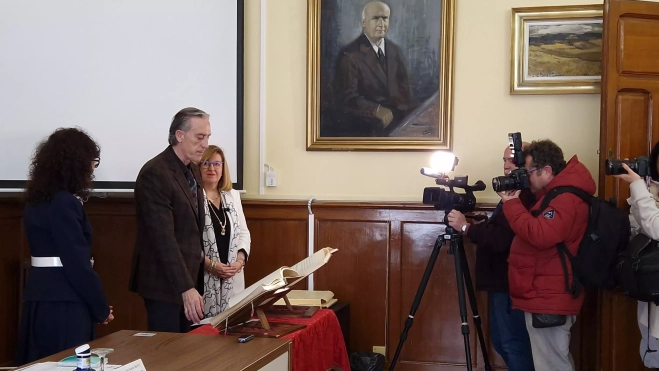 El profesor Javier Zaragoza ha iniciado su discurso expresando su gratitud hacia todas las personas que han asistido al acto y ha reconocido la labor de quienes le han precedido en el cargo, resaltando su papel fundamental en la evolución de la Escuela Normal de Maestros hasta convertirse en la actual Facultad de Ciencias Humanas y de la Educación. "Generasteis un encuentro que nos ha ayudado a recorrer un camino, a superar diferentes obstáculos, a situarnos como referentes de la formación de maestros y profesores".