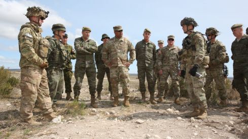 El Jefe de Estado Mayor del Ejército de Tierra, general de ejército Amador Enseñat y Berea, el comandante jefe de la United States Army Europe and África (USAREUR-AF) y jefe del Cuartel General del Mando Terrestre de la OTAN (Izmir), general Darryl Anthony Williams, asisten al ejercicio Defender Europe 23, el ejercicio principal del Ejército de Tierra (ET) para el año 2023.