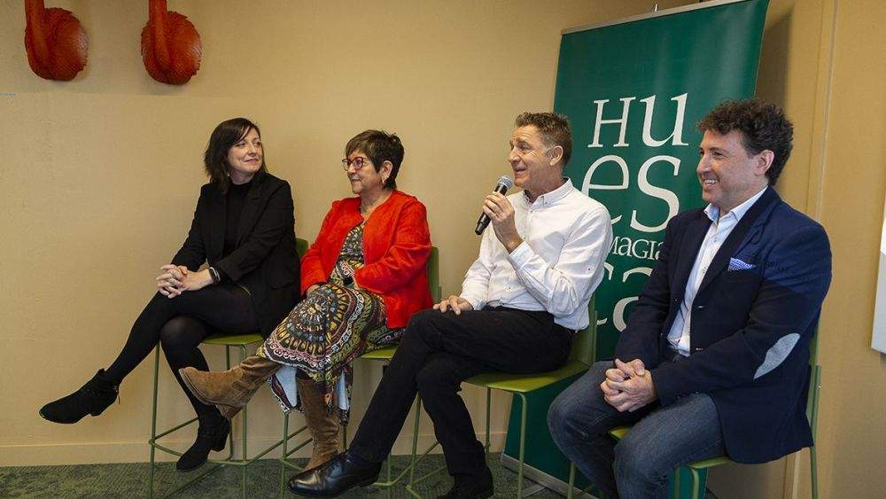 El anuncio de la campaña de Huesca la Magia “No vengas a Huesca”, ganador del premio a Mejor Pieza del Año en el reciente Festival de la comunicación y marketing celebrado en Sevilla, se presentó este jueves en Madrid, con la presencia del actor protagonista y nominado al Goya, Juanjo Artero, junto a Elisa Sancho, vicepresidenta de la Diputación Provincial de Huesca, Estela Rasal, directora del spot y de Nut producciones, y Fernando Blasco, director gerente de Tuhuesca.