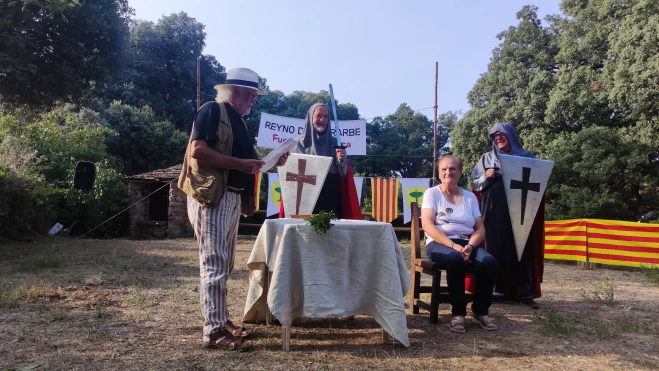 Encarnando a un noble medieval, el cineasta fue el encargado de tomar juramento, según el rito de los Fueros de Sobrarbe, en este caso a la alcaldesa de Bárcabo Carmen Lalueza, que pasó a ser la segunda autoridad democrática que los jura: “Nos que somos tanto como vos, pero todos juntos más que vos ¿juráis respetar nuestros fueros y libertades?…". Para terminar con el lacónico "Y si no, non".