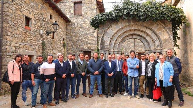 El presidente ha estado acompañado en su visita al Sobrarbe por el alcalde de Fiscal, Manuel Larrosa, los diputados Enrique Pueyo y Ramón Laplana, alcaldes de la zona y representantes de empresarios y ganaderos de la comarca, además de por el consejero de Agricultura, Ganadería y Medioambiente, Joaquín Olona.