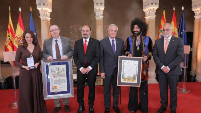Igualmente, Lambán ha entregado dos medallas, una al mérito profesional a la empresaria, Alicia Asín, y al mérito deportivo, al Club Casademont, si bien la entrega a este último ha tenido que ser proyectada en video pues, por motivos de agenda deportiva del equipo femenino. Por su parte, el presidente de las Cortes de Aragón, Javier Sada, ha entregado el premio de la institución al violinista Ara Malikian.