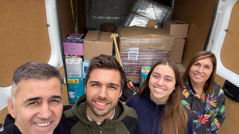 El presidente de Levitec invirtió toda la jornada del domingo, junto a compañeros de Asafa Aragón y de Humeco, en repartir los furgones con material en Valencia y Paiporta acompañado de su mujer y sus hijos Nico y Daniela. Previamente, el sábado había acudido a Carrefour para llenar la furgoneta gracias a la buena disposición de su gerente, Arantxa.