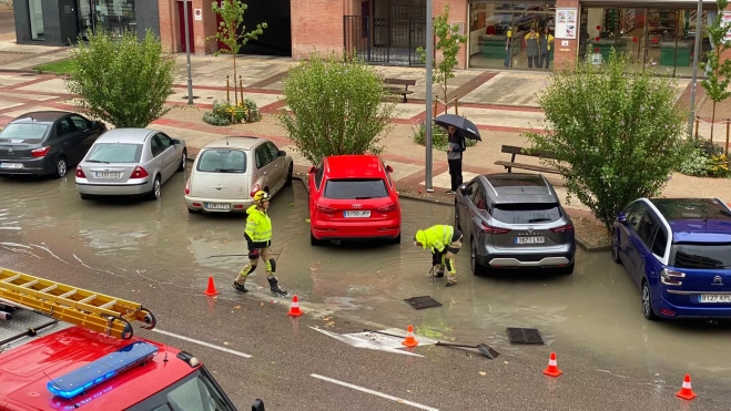 En la calle Teruel se ha producido una inundación al quedar taponada una alcantarilla por las hojas arrastradas por el agua. Esta situación se ha producido también en Manuel Ángel Ferrer y en otros puntos de la ciudad, así como caída de ramas, como entre el Hospital Provincial y la calle Gibraltar.