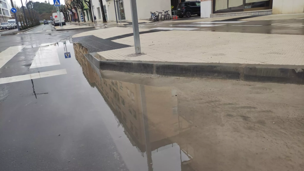 Es el caso de la calle San Jorge que esta mañana sorprendía a los residentes al constatar que, pese a ser una de las beneficiadas por el reciente plan de asfaltado (en el que Sorigué aplicó abundantes medios y rapidez), se ha visto inundada en algunos de sus tramos junto a pasos de cebra y confluencias.