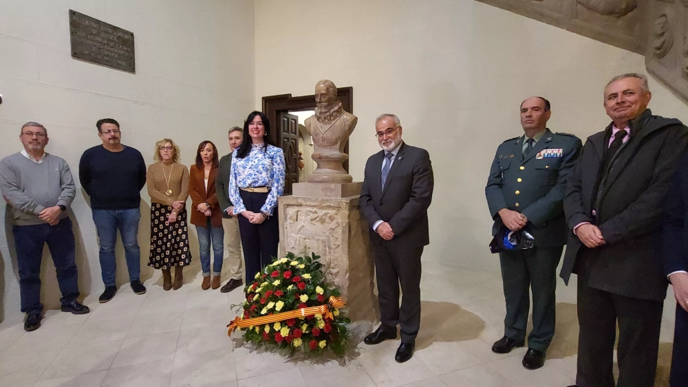 El Ayuntamiento de Huesca ha acogido en el Día del Justicia y de los Derechos y Libertades de Aragón, el 20 de diciembre, un acto institucional para reconocer al Justiciazgo, que ha concluido con la tradicional ofrenda floral en el busto de Juan de Lanuza ubicado en patio de acceso al Palacio Consistorial.