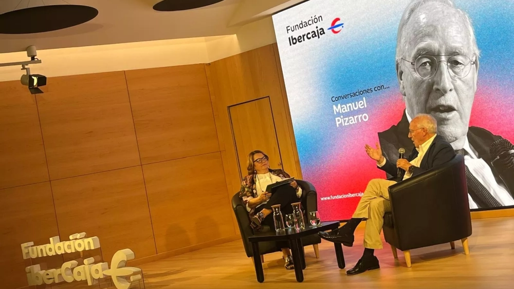 El economista, jurista y político Manuel Pizarro repasó los principales desafíos de España y Aragón en un mundo globalizado en una conversación este pasado miércoles con la periodista Genoveva Crespo, celebrada en la sede de la Fundación Ibercaja-Palacio de Villahermosa, dentro del ciclo Conversaciones de Otoño que organiza la Universidad Internacional Menéndez Pelayo. Desde la posición de Europa en el escenario internacional hasta la competitividad económica, la transición energética, la justicia y la sostenibilidad, Pizarro subrayó que el país no puede permitirse distracciones internas. "En la vida y en la política lo peor es equivocarse de enemigo”.