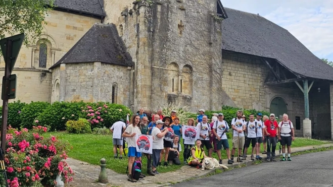 La Marcha Pau-Somport despierta la curiosidad y la simpatía por las localidades que va recorriendo. En Jurancon para delante de "maison magnifique" y su alegre propietario de asoma a la puerta para darnos conversación.