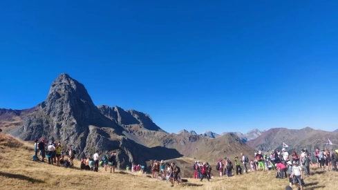 Más de 500 amantes de la montaña se han dado cita este sábado en la frontera con Francia del Portalet, convocados por la Plataforma en Defensa de las Montañas de Aragón, para reivindicar la creación del Parque Natural Anayet-Partacua y proteger el valle de Canal Roya.