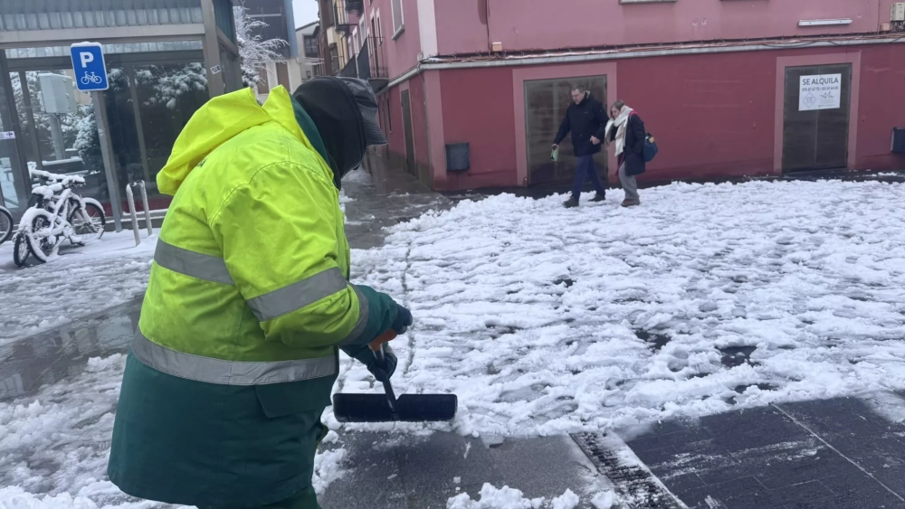Durante más de doce horas consecutivas, los servicios municipales y de emergencia de Jaca han trabajado para garantizar la seguridad y la accesibilidad en respuesta a la nevada y a las previsiones meteorológicas con aviso naranja hasta este lunes al mediodía.