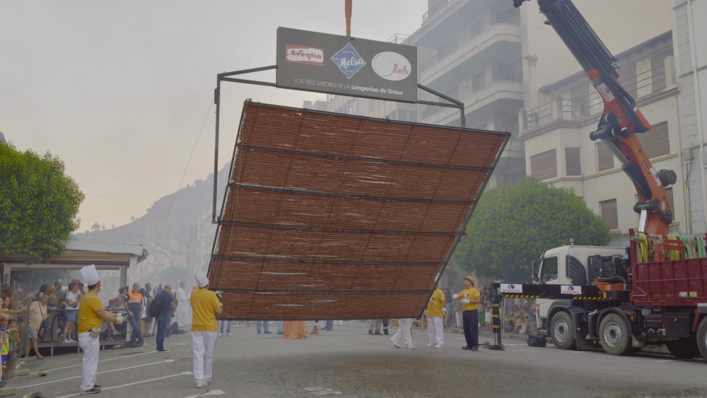 Disfrutar de la longaniza de Graus en una fiesta en la que este producto es el protagonista es de lo que podrán presumir las miles de personas que se han unido este sábado a esta celebración única en el mundo. Tras la elaboración de más de mil kilos de embutido, se ha asado en la enorme parrilla de 25 metros cuadrados, cuyo volteo ha generado gran expectación, y se ha repartido en una gran degustación popular.