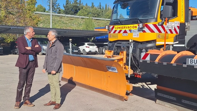 El subdelegado del Gobierno en Huesca, Carlos Campo, ha visitado este jueves el centro de conservación y explotación de la Dirección General de Carreteras ubicado en la avenida Doctor Artero de Huesca, uno de los cuatro de los que dispone la provincia. Allí, el subdelegado ha recordado que el Plan de Vialidad Invernal, que arrancó el pasado 1 de noviembre y estará activo hasta el mes de abril, “permite garantizar las mejores condiciones de circulación en la Red de Carreteras del Estado cuando llegan la nieve o el hielo”.