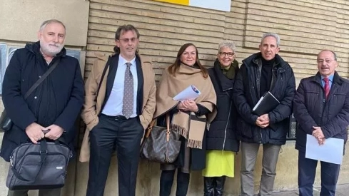 Fernando Beltrán, delegado del Gobierno en Aragón, ha recibido a los organizaciones empresariales de la provincia de Huesca y de las comarcas afectadas por la reivindicación del tren convencional entre Zaragoza y Barcelona, acompañadas por Raúl Rivarés y Jaime Larruga, de Monegros no Pierdas Tu Tren.