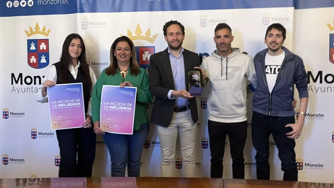 Monzón acoge el próximo sábado 27 de abril la Noche de la Influencia para premiar a los mejores creadores de contenidos de Aragón. El acto, que se celebrará en el Auditorio San Francisco de 18:00 a 20:00 horas, ha sido presentado este lunes por el alcalde de Monzón, Isaac Claver, la concejala de Transformación Digital, Sonia Bastinos, las organizadoras de Aragón Influye, Reyes Ferrer y Andrea Gil, y los creadores de contenidos Luis Cañada y José Luis Castillo.
