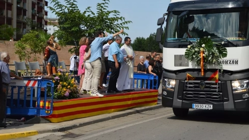 La jornada festiva ha arrancado con la concentración en la parcela 48 del Polígono Paúles para desde allí iniciar el paseo por la calle José María Peñaranda, camino del Aciprés, paseo San Juan Bosco y avenida de Lérida hasta la rotonda del Jaime I, donde han girado para volver hasta la calle Paúles y finalizar el recorrido. A la altura del puente Viejo, con la talla de San Cristóbal presidiendo, se ha bendecido a los camiones con la presencia, entre otros, del alcalde de Monzón, Isaac Claver, y la teniente de alcalde, Marta Montaner.