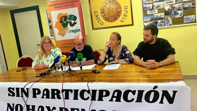 Eva Ramos, Pepe Polo, Violeta Gracia y Diego Cajal ha presentado la asamblea anual en Huesca del movimiento vecinal aragonés.