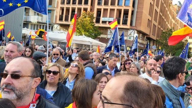 Una multitud de oscenses ha clamado contra la amnistía y el acuerdo de PSOE y Junts, en una concentración en la Plaza de San Antonio de Huesca convocada por el Partido Popular y en el que masivamente se han coreado lemas contra Pedro Sánchez, fundamentalmente Puigdemont ("a prisión") y con vivas a España además de una advertencia: "España no se vende".