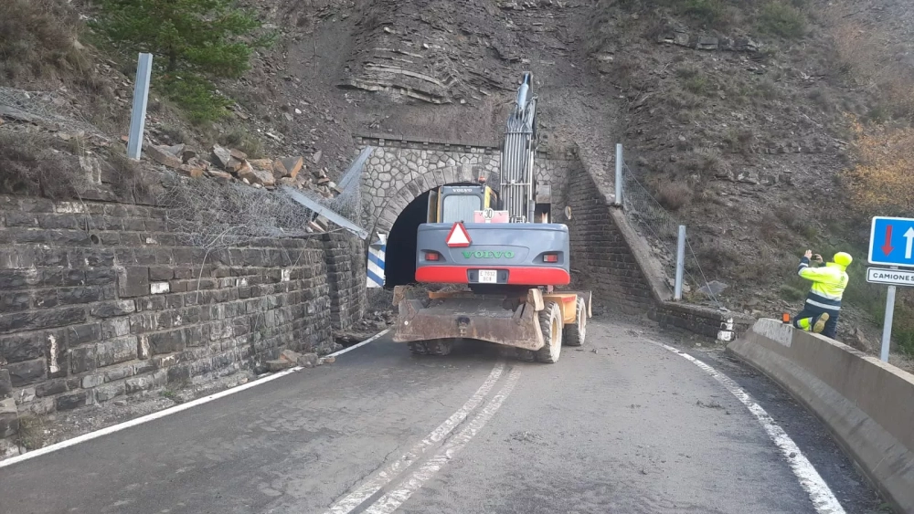 Tras el desprendimiento ocurrido el pasado sábado en la boca del túnel de Gavín, la carretera N-260a seguirá cortada varios días, con paso excepcional para vehículos de emergencias.