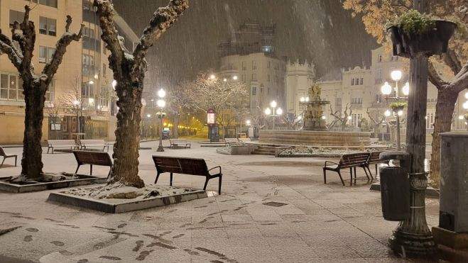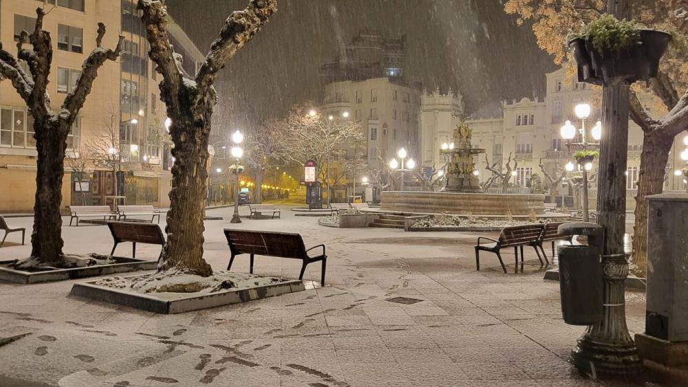 La cota ha bajado de los 500 metros dejando entre las 2 y las 4 de la madrugada cubierta de una fina capa de nieve parte de la ciudad. La lluvia previa ha impedido que cuajara en todas las calles, pero se que ha podido contemplar, aunque con menos intensidad, alguna imagen que no se producía en este mismo mes hace dos años, con la borrasca Filomena. La nieve en algunos momentos ha caído con más fuerza, aunque después el cielo ha quedado nuevamente despejado, con una temperatura de 0 grados, y se ha mantenido en los tejados.