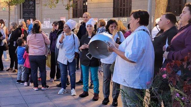 “La gente está con nosotros y espero que los que nos mandan abran un poco los oídos”, ha apuntado Víctor González. “No puede ser que nos quedemos solos para dar de comer a 200 y que no haya sustituciones. Nos están llevando a la extinción a los cocineros y personal de cocina de la DGA. Están esperando que lleguen las líneas frías y terminar con este servicio púbico, una pena”, ha lamentado.
