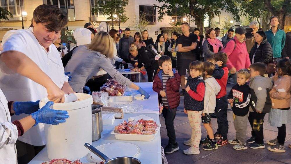 “No somos un negocio, somos un servicio público”, reivindican cocineras y cocineros y ayudantes de cocina, que desde distintos colegios de la provincia y también de varios puntos de Aragón han ofrecido una chocolatada en la plaza de Navarra, animada por los Gaiters d´a Terra Plana. Las cacerolas han servido esta vez para hacer mucho ruido, acompañados por pitos, con la esperanza de que les escuche el Gobierno de Aragón. También se han recogido firmas de apoyo a sus peticiones.