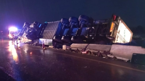 Un camión frigorífico se salió de la vía y volcó en la rotonda de Quicena, sobre las 21:40 horas de ayer. El accidente no involucró a otros vehículos.