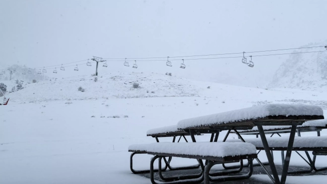 El frente frío que ha dejado atrás el anticiclón ha entrado en la provincia de Huesca y ha dejado nevadas en el Pirineo, que han llegado a las estaciones de esquí y se mantendrán este miércoles, a pocos días de la previsión de inicio de la campaña 2023-2024.