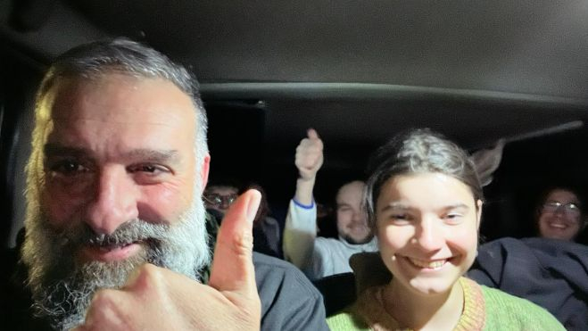 22:59 h., Nadiia y Vika ya están con nosotros. Todos aplaudimos. Javier, el cabo, llamó a José y Ana, los padres putativos de Vika, todos escuchamos la conversación. Lágrimas de emoción, todos estamos conmovidos. Seguimos nuestro viaje con nuestra “Sor Citroën”, que en adelante se comportó como fiel cumplidora de la ley. Un poco cansada, pero llevó a término su cometido.