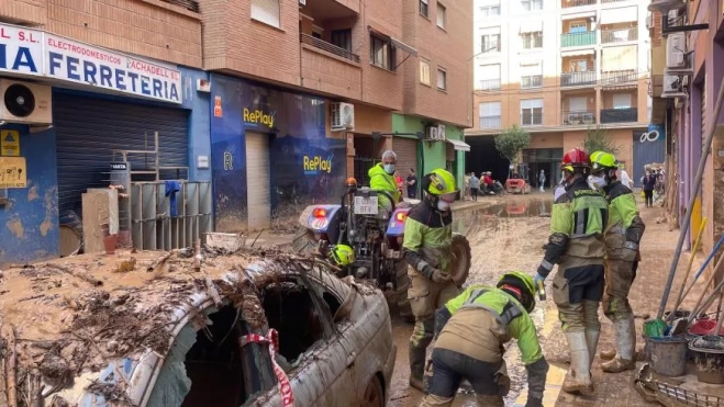 La noche ha vuelto a ser la franja más propicia para los trabajos del operativo aragonés en Catarroja y, sobre todo, en el fin de semana en el que el aluvión de voluntarios bien intencionados ha sido muy evidente. De ahí que el fin de semana se haya marcado como prioridad el trabajo en el colector para evitar el colapso en el alcantarillado.