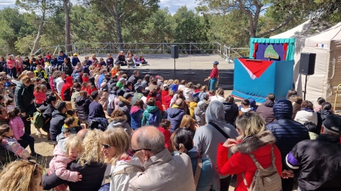 Al mediodía, con un cambio de planes sobre la ubicación del escenario debido al viento, Teatro Arbolé ha puesto en escena La vendedora de cuentos, con un auditorio al completo de familias.