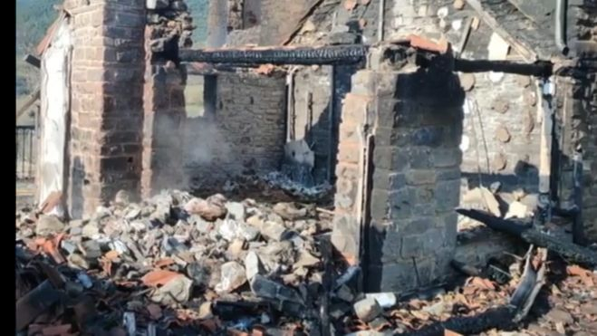 Vecinos de la localidad que vieron las llamas avisaron a los bomberos, pero la construcción resultó totalmente destruida,
