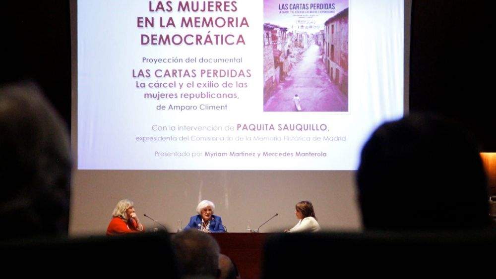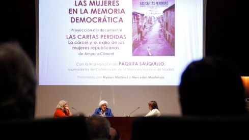 us palabras han precedido a la proyección del documental “Las cartas perdidas”, de Amparo Climent, que rescata a través de cartas reales la memoria a las mujeres exiliadas o encarceladas durante la contienda en nuestro país. El acto ha sido conducido por las periodistas de EL DIARIO DE HUESCA Myriam Martínez y Mercedes Manterola.