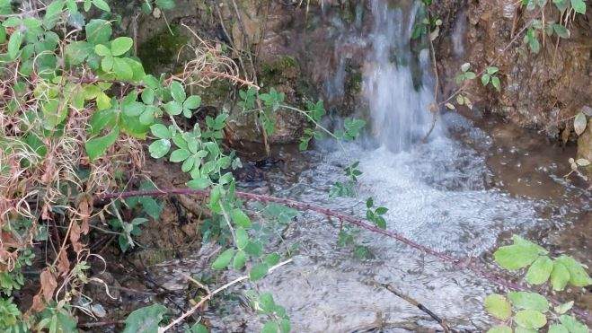 El mal estado de tuberías y sifones merma las posibilidades de suministro desde San Julián de Banzo, para alivio de los jabalíes que aprovechan las pérdidas embalsadas en los campos en los que beben todas las noches. El mismo curso de agua desaprovechada que apreciábamos en octubre ahora ha aumentado claramente su caudal. Aquel día, con un cálculo sencillo, constatábamos que un pozal de 10 litros se llenaba en 6 segundos, en un minuto 100, en una hora 6.000. En un día, 144.000 litros. Es evidente que ese volumen se ha incrementado, y no hay más que comparar los dos videos, el original y el de mes y medio después. Como señala el zahorí, hay que duplicar la estimación porque la toma estaba en el centro del riachuelo, y por los lados hay otro tanto. Más de mil personas podrían beber agua de San Julián de Banzo.