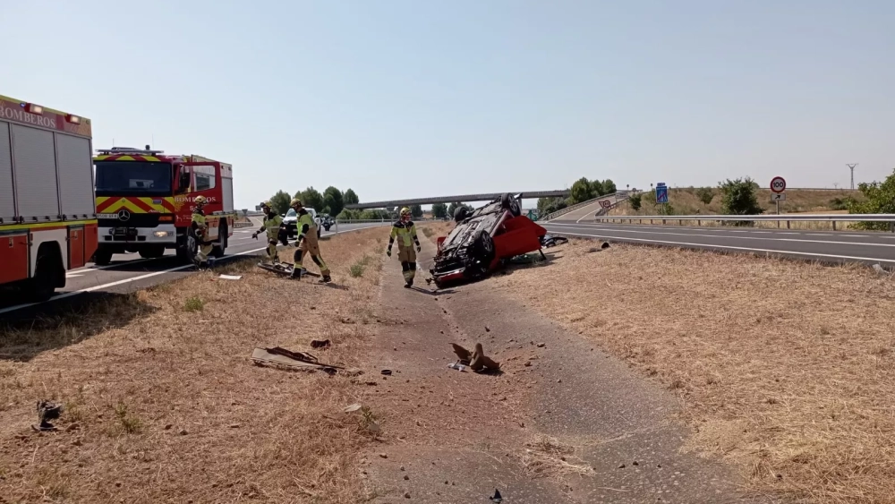 Un vehículo ha volcado este jueves en la A-23, a la altura del kilómetro 368 en dirección Zaragoza, tras salirse de la vía. El conductor ha quedado atrapado en el interior del coche, que ha quedado volcado y apoyado parcialmente sobre su techo, con el ocupante colgando boca abajo.