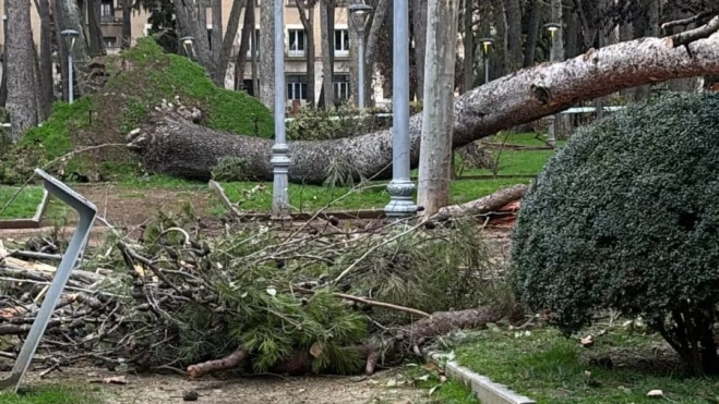El ejemplar ha sufrido un vuelco asociado a la saturación de agua en el terreno tras las últimas lluvias. Cuando el suelo está anegado, disminuye su capacidad de sujeción y puede perder estabilidad el sistema radicular. A ello se han sumado las rachas de viento registradas durante la pasada noche, que han alcanzado los 51,5 kilómetros por hora.