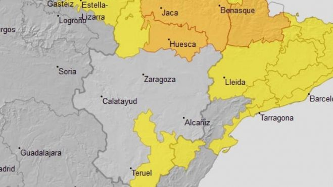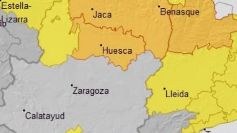 El aviso permanecerá activo hasta medianoche en el centro de Huesca y hasta las 10:00 horas del viernes en el Pirineo.