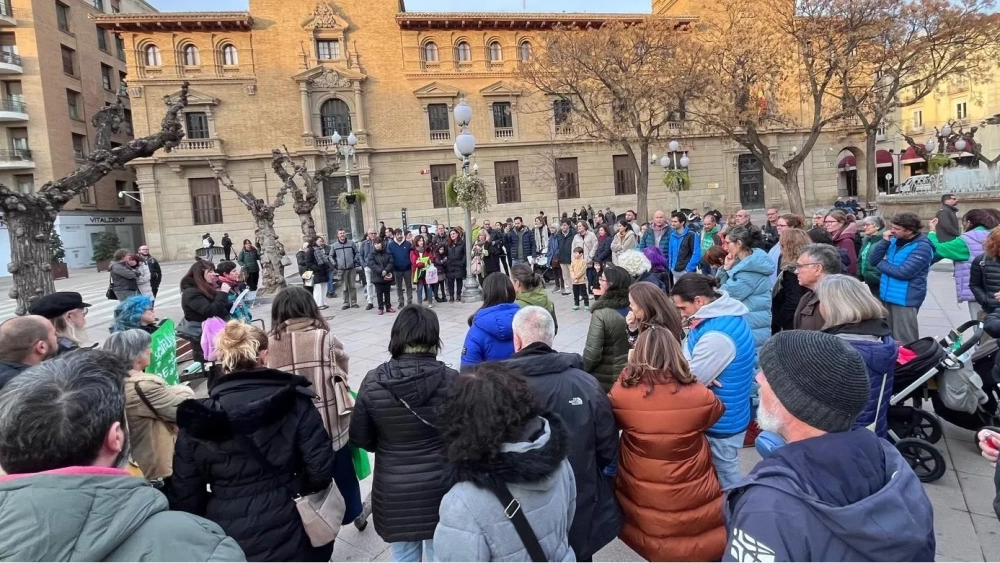Decenas de personas han participado en una concentración en la plaza de Navarra convocada en la capital oscense por la Plataforma en Defensa de la Enseñanza Pública para pedir que se unifiquen los criterios de evaluación en Aragón, ya que, según denuncia, existe un exceso de burocracia en Huesca a instancias de la inspección educativa que sólo se está dando en esta provincia.