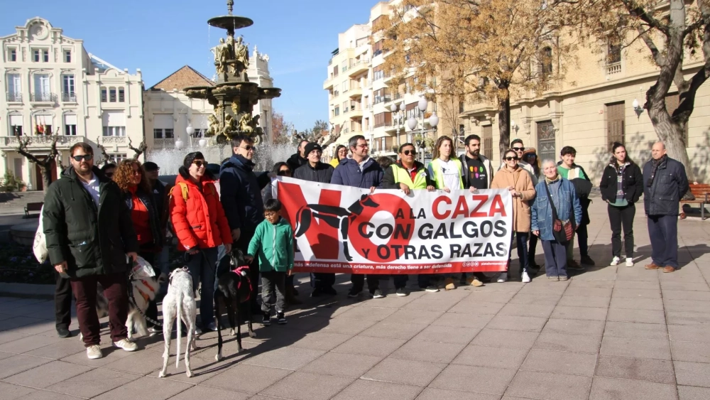La Plataforma NAC (no a la caza) se ha concentrado en Huesca este mediodía para reivindicar el fin de la caza y específicamente el de la actividad cinegética con perros.