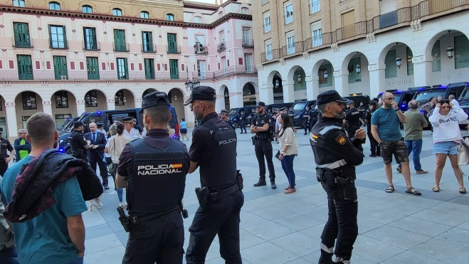 El acto ha servido para presentar el dispositivo que la Policía Nacional despliega durante la 80 edición de la Vuelta, y ha contado con la participación del delegado del Gobierno en Aragón, Fernando Beltrán, junto al jefe superior de Policía de Aragón, Florentino Marín Parra, y representantes municipales.