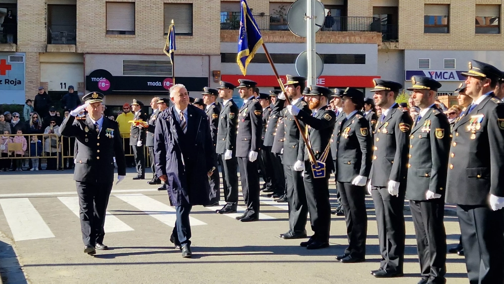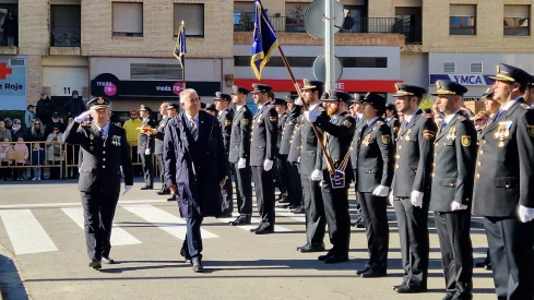 La conmemoración ha arrancado a las 12:00, en una mañana soleada pero fría. El subdelegado del Gobierno, José Carlos Campo, ha pasado revista, ante la atenta mirada del nutrido grupo de autoridades que han asistido. Entre ellas, se encontraba la alcaldesa de la ciudad, Lorena Orduna, el presidente de la Diputación de Huesca, Isaac Claver, los máximos representantes municipales de las ciudades oscenses que acogen otras sedes de este cuerpo -Jaca, Monzón, Fraga y Canfranc-, concejales, diputados y responsables de entidades económicas y sociales, además de altos cargos militares, como el general jefe de la División Castillejos, José Manuel Vivas, y de otros cuerpos de seguridad.