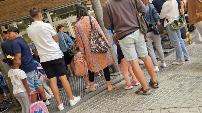 Entre la multitud, una niña insiste con lágrimas: "Que no quiero, que no quiero entrar…". Su madre, intentando transmitir serenidad, la acaricia y le susurra con ternura: "No te preocupes, que solo vais a jugar".