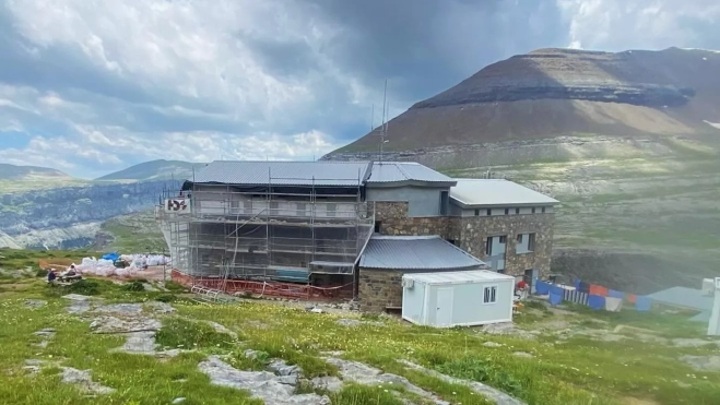 El refugio de Góriz vuelve a abrir sus puertas este viernes 12 de julio tras dos meses y medio cerrado por obras. Los trabajos continuarán hasta octubre, por lo que la instalación estará operativa parcialmente, con un 50 por ciento de aforo.