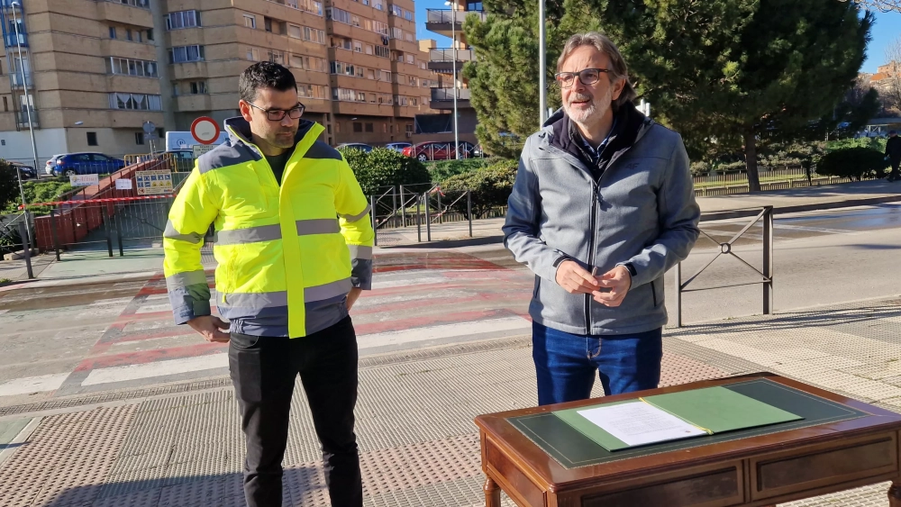 En el plazo de dos meses, la pasarela sobre el río Isuela volverá a ponerse en uso, casi dos años y medio después de que tuviera que ser cerrada al tránsito por su estado de deterioro. El concejal de Urbanismo del Ayuntamiento de Huesca, Iván Rodríguez, ha firmado este viernes el acta de inicio de las obras de rehabilitación de esta comunicación, que conecta los barrios del Perpetuo Socorro y Santo Domingo y San Martín, y da acceso directo al Hospital Provincial Sagrado Corazón de Jesús.