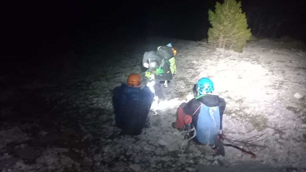 Ya el sábado se auxilió a una cordada de dos escaladores en el pico Ezcarurre, en Ansó, en la via Esminu. Especialistas del Greim de Jaca, una vez que los localiza visualmente, deciden intentar llegar a ellos caminando y realizando pequeñas trepadas. El terreno, después de un primer tramo de sendero es abrupto, bastante roto, y con zonas con nieve, por lo que es necesario utilizar botas de alta montaña y piolets. Tras una hora de recorrido, llegan hasta los escaladores, dos madrileños de 34 años, que estaban ilesos por lo que se procede a evacuarlos dando seguridad con cuerda.