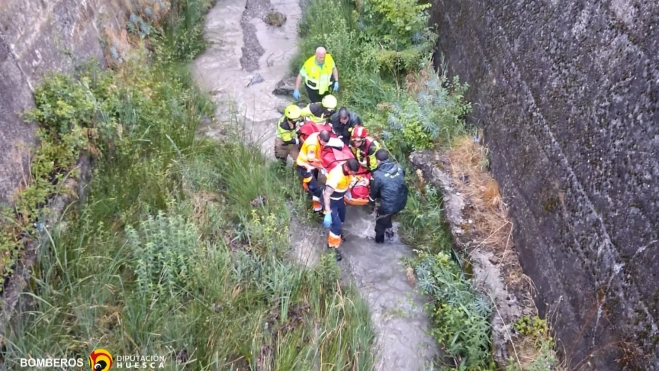 En el operativo han participado efectivos de la Guardia Civil, dos ambulancias del 061 y personal sanitario del Centro de Salud de Aínsa, así como una dotación del parque de bomberos de Boltaña -dependiente de la DPH- compuesta por un oficial, dos bomberos y el jefe de intervención.
