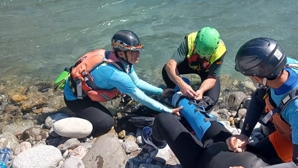 Se rescató también a un vecino de Tarragona, de 43 años, que había sufrido una posible fractura de tobillo al tratar de sacar de la orilla su piragua en Puértolas. Miembros del Greim de Boltaña evacuaron al accidentado en camilla Canyon y realizaron la transferencia a una ambulancia para su traslado a un centro hospitalario.