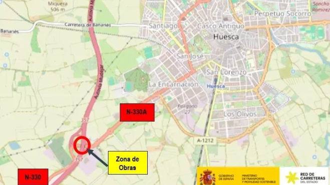 La restrucción se une a las que se llevan a cabo la carretera N-330 por las obras de este mismo viaducto, de modo que se encuentra cortado al tráfico un carril de esta vía que pasa bajo la estructura en obras. Este tramo es de titularidad del Ayuntamiento de Huesca, y se ha dispuesto paso alternativo de vehículos regulado por semáforos.
