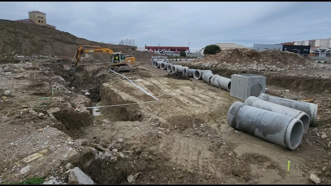 La rotura de una tubería principal de abastecimiento a consecuencia de las obras que se desarrollan en el Polígono Harineras de Huesca ha obligado a cortar el suministro de agua.