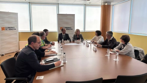 El consejero de Sanidad del Gobierno autonómico, José Luis Bancalero Flores, y la gerente del 061 Aragón, Marta Sampériz, han recibido este miércoles a representantes de la Plataforma ciudadana UVI Móvil Jaca, y al alcalde de la ciudad, Carlos Serrano.